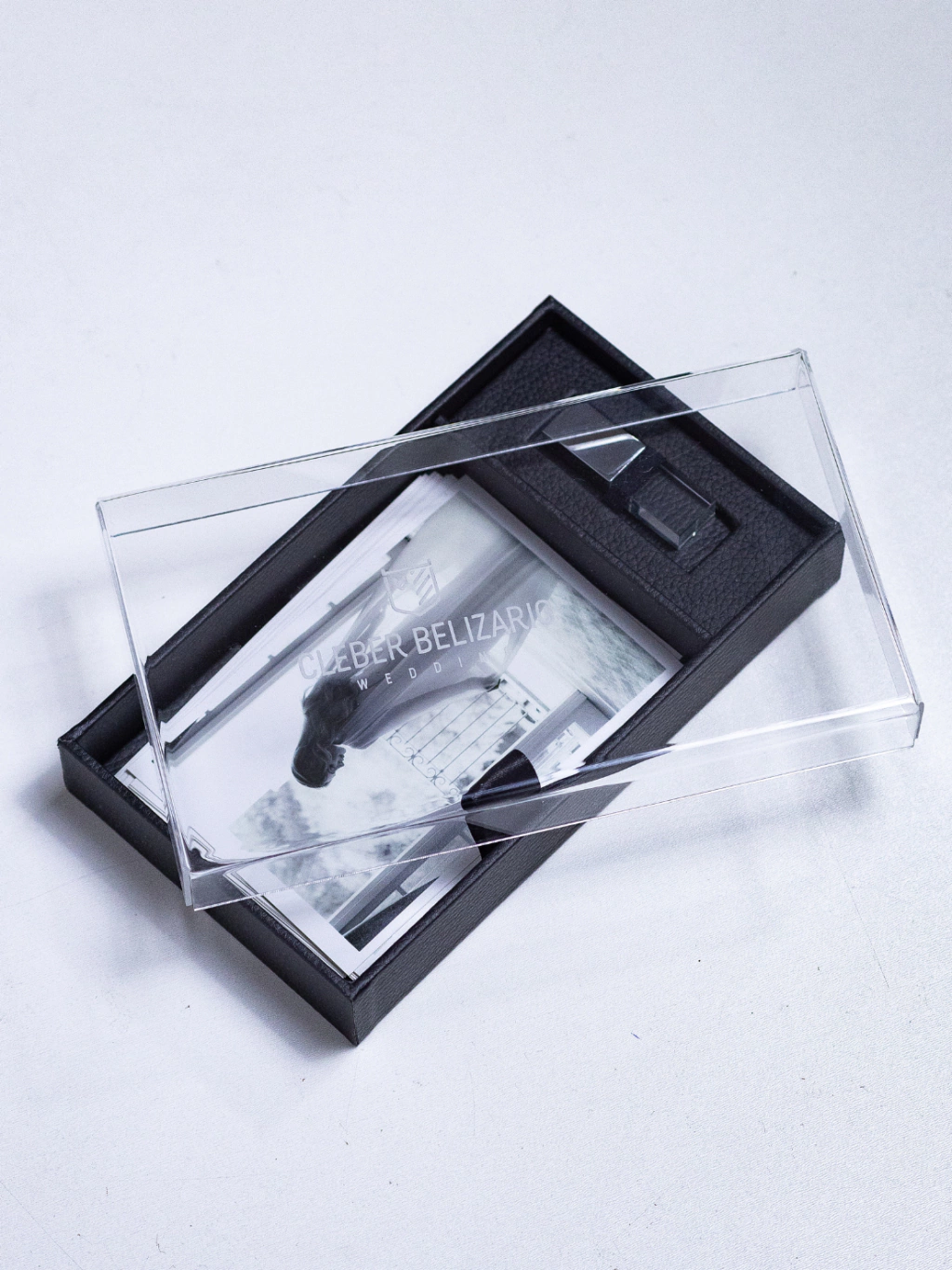 Apresente seus trabalhos com elegância e impacto visual com a Caixa Affection Evolution, desenvolvida em courino premium com design clean e tampa de acrílico transparente. Com divisória interna para acomodar fotos no formato 10x15 cm e um pen drive, é perfeita para criativos que desejam transformar cada entrega em uma experiência memorável.